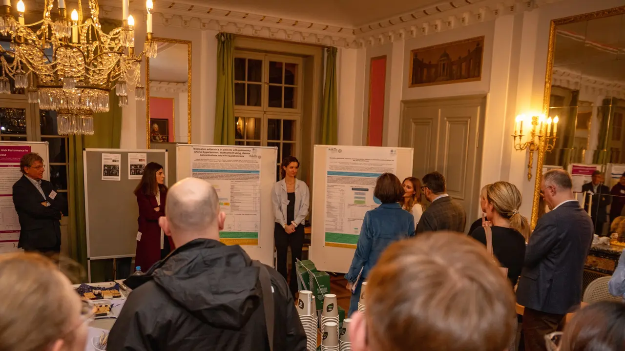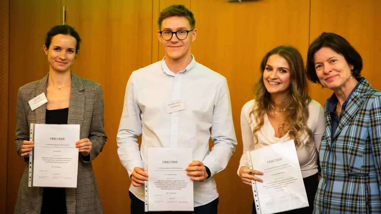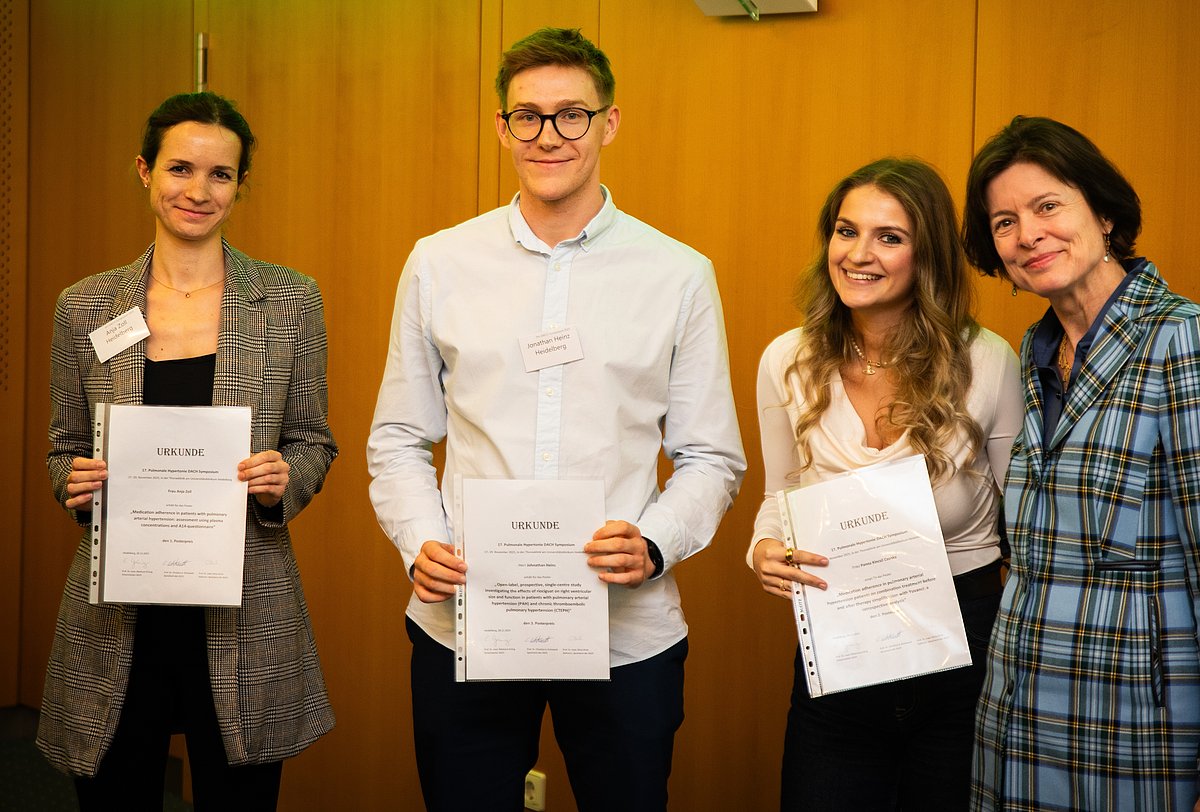 In dem Raum im Anschluss an das Foyer war eine Poster-Ausstellung zu sehen. In darin präsentierten Arbeiten setzten sich junge Mediziner mit Einzelaspekten der PH auseinander. Die Arbeiten wurden wie in den Vorjahren von einer vierköpfigen Jury bewertet, und am Freitagabend konnten die drei Poster-Preisträger geehrt werden. Diese waren heuer Anja Zoll (1. Preis) sowie Panna Csonka und Jonathan Heinz (2. bzw. 3. Preis). Die mit 1.000 und 500 € dotierten Arbeiten thematisierten jeweils medikamentöse Aspekte der PH.