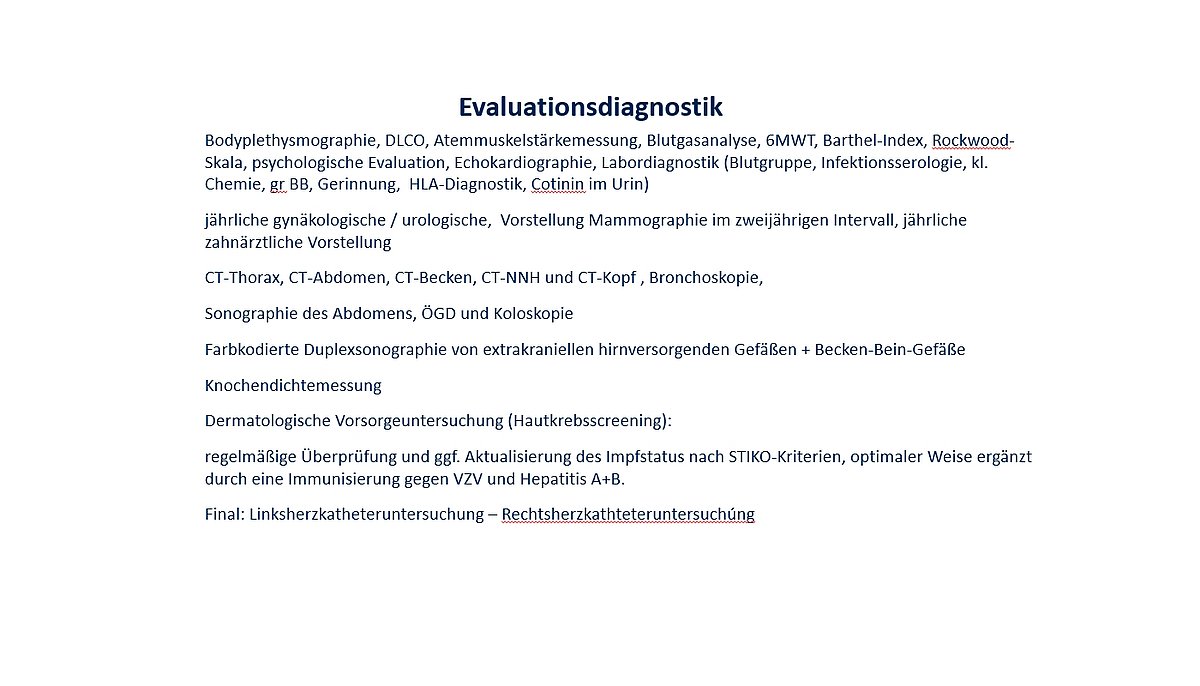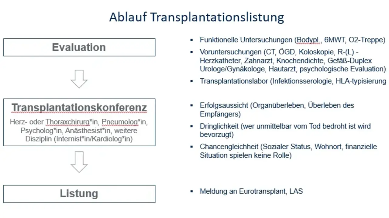 Einfach gesagt: Es gibt Werte für zu erfüllende Wartelistenmodelle. Ist man für die Transplantation vorgesehen und erhält die Nachricht, dass man auf die Transplantationsliste kommt, muss man eine Vielzahl von Untersuchungen absolvieren um auszuschließen, dass man irgendwelche Keime, Bakterien, Krankheiten, oder Krebszellen in sich trägt. Denn das Immunsystem muss vollständig runtergefahren werden, um eine Abstoßung des neuen Organs zu vermeiden. Sind noch Keime vorhanden, würden sie sich jetzt explosionsartig vermehren.