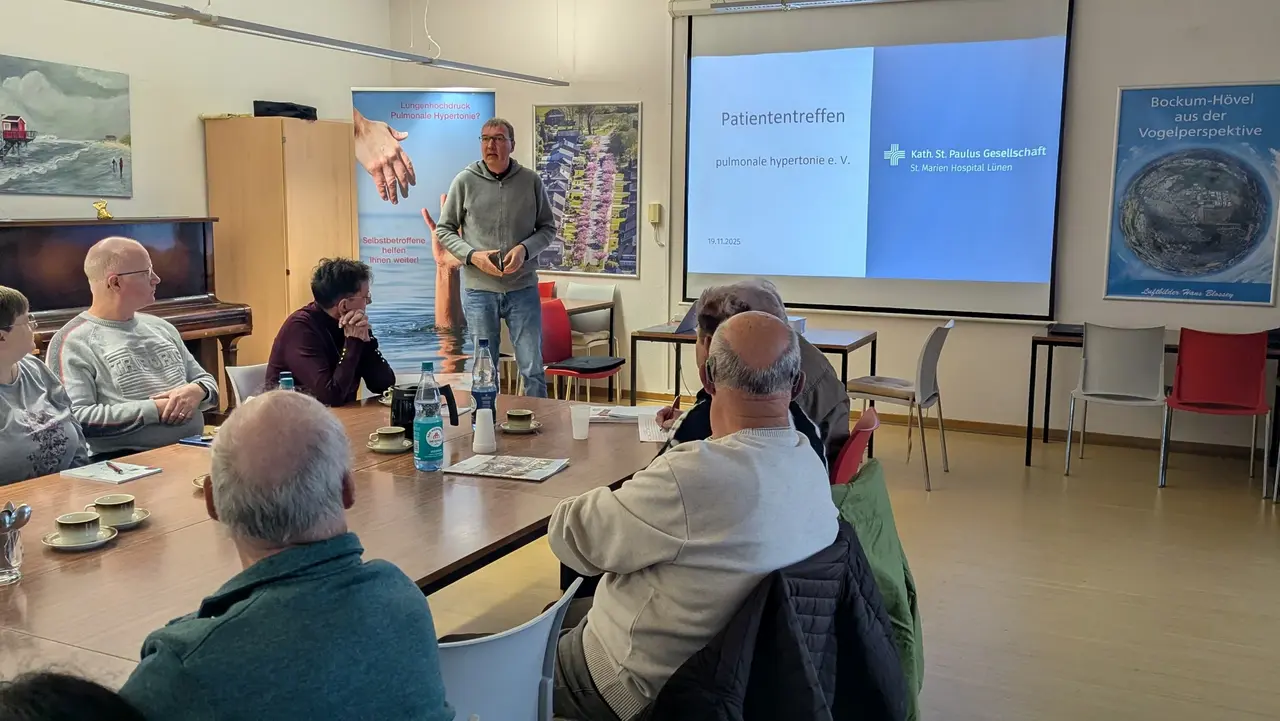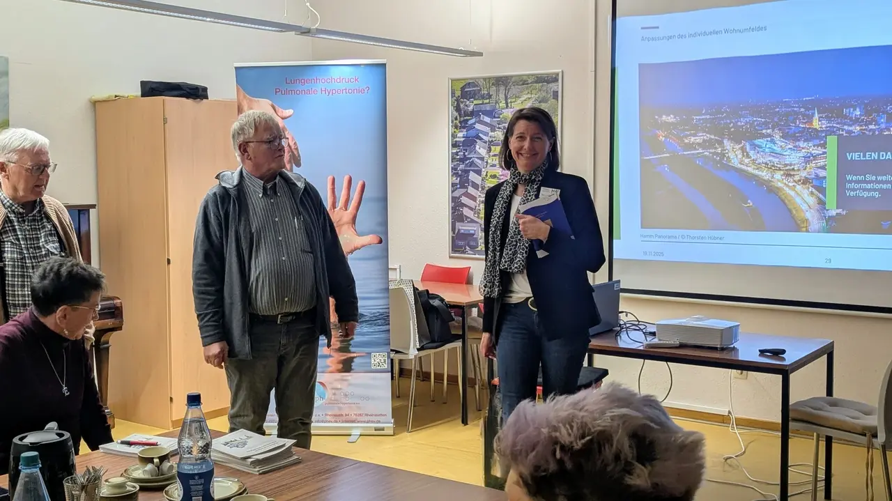 Am Mittwoch, den 19. November 2025, fand im Haus der Begegnung in Hamm eine gut besuchte Patientenveranstaltung statt, die sich umfassend den Themen COPD, pulmonale Hypertonie (PH) sowie verschiedenen Unterstützungsangeboten für pflegebedürftige Menschen widmete. Insgesamt 23 Teilnehmerinnen und Teilnehmer folgten der Einladung und wurden zu Beginn herzlich durch den Landesleiter Joachim Mohr und seinen Stellvertreter Christoph Strauss begrüßt. Beide betonten in ihren einführenden Worten die große Bedeutung solcher Informationsveranstaltungen, die Betroffenen und Angehörigen wertvolle Orientierung und Austauschmöglichkeiten bieten.